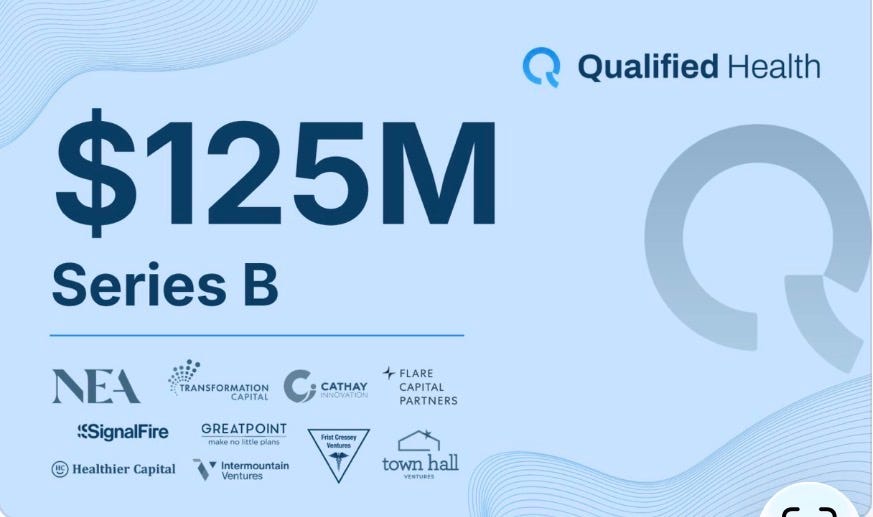 - Qualified Health closes $125M Series B, one of the largest healthcare AI-specific Series B rounds on record, bringing total raised to $155M