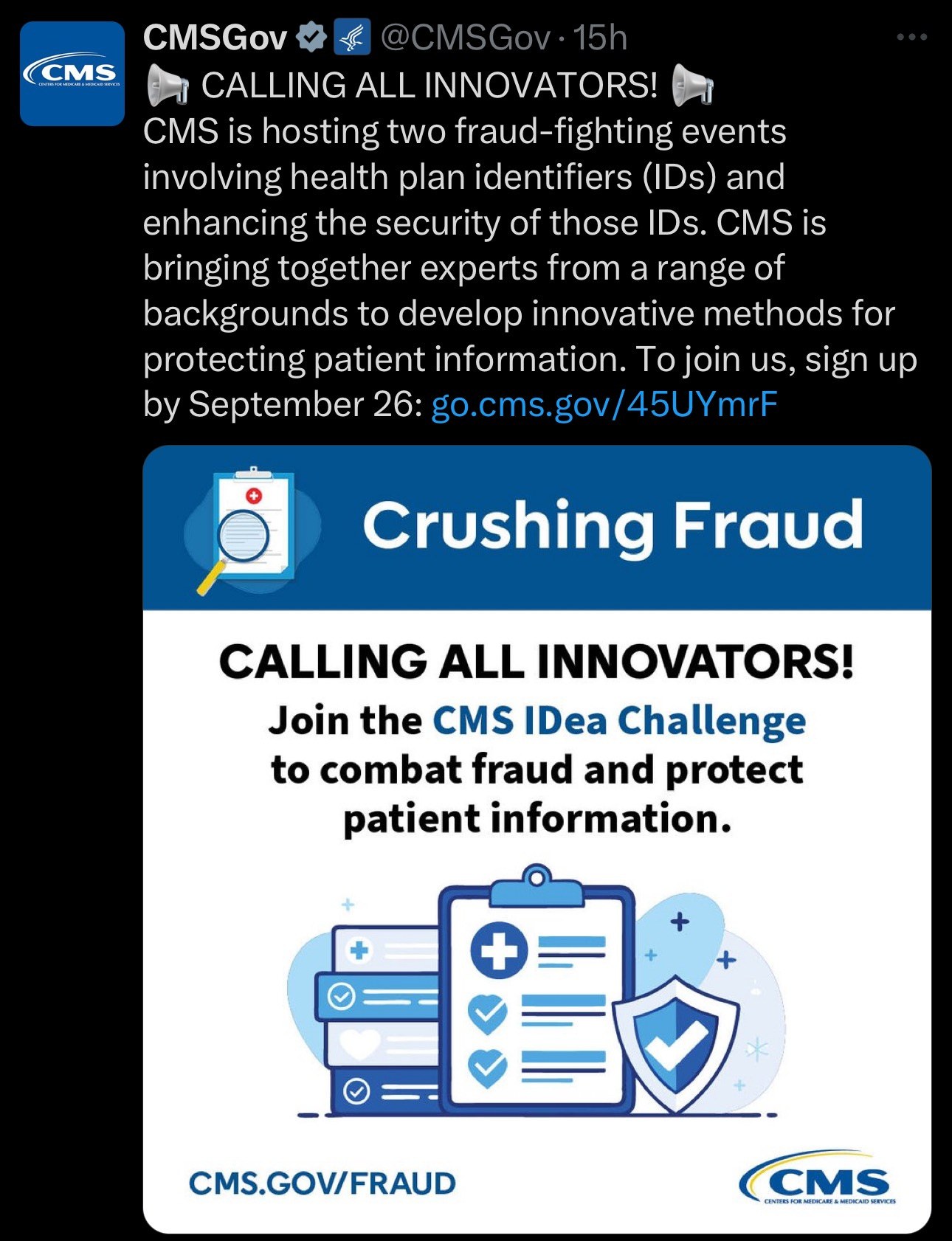 The Centers for Medicare and Medicaid Services has demonstrated increasing receptivity to innovative approaches to fraud prevention, as evidenced by their IDea Challenge initiative seeking new strategies for securing member IDs. The agency's focus on collaborative innovation and willingness to explore diverse approaches to fraud prevention creates a favorable regulatory environment for CryptoGuard's deployment.