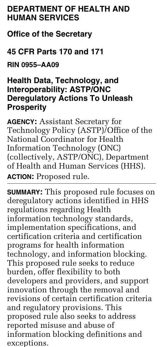 For anyone building in or investing around EHR connectivity, clinical AI, data interoperability, or health data infrastructure, this rule matters more than most health IT policy in the last several years. The certification program is the regulatory scaffolding that determines what features certified EHR products are required to have, which shapes what APIs exist, what data you can access and how, and what competitive dynamics look like between EHR platform owners and third-party vendors. Changing 70% of it in one rule is a big move.