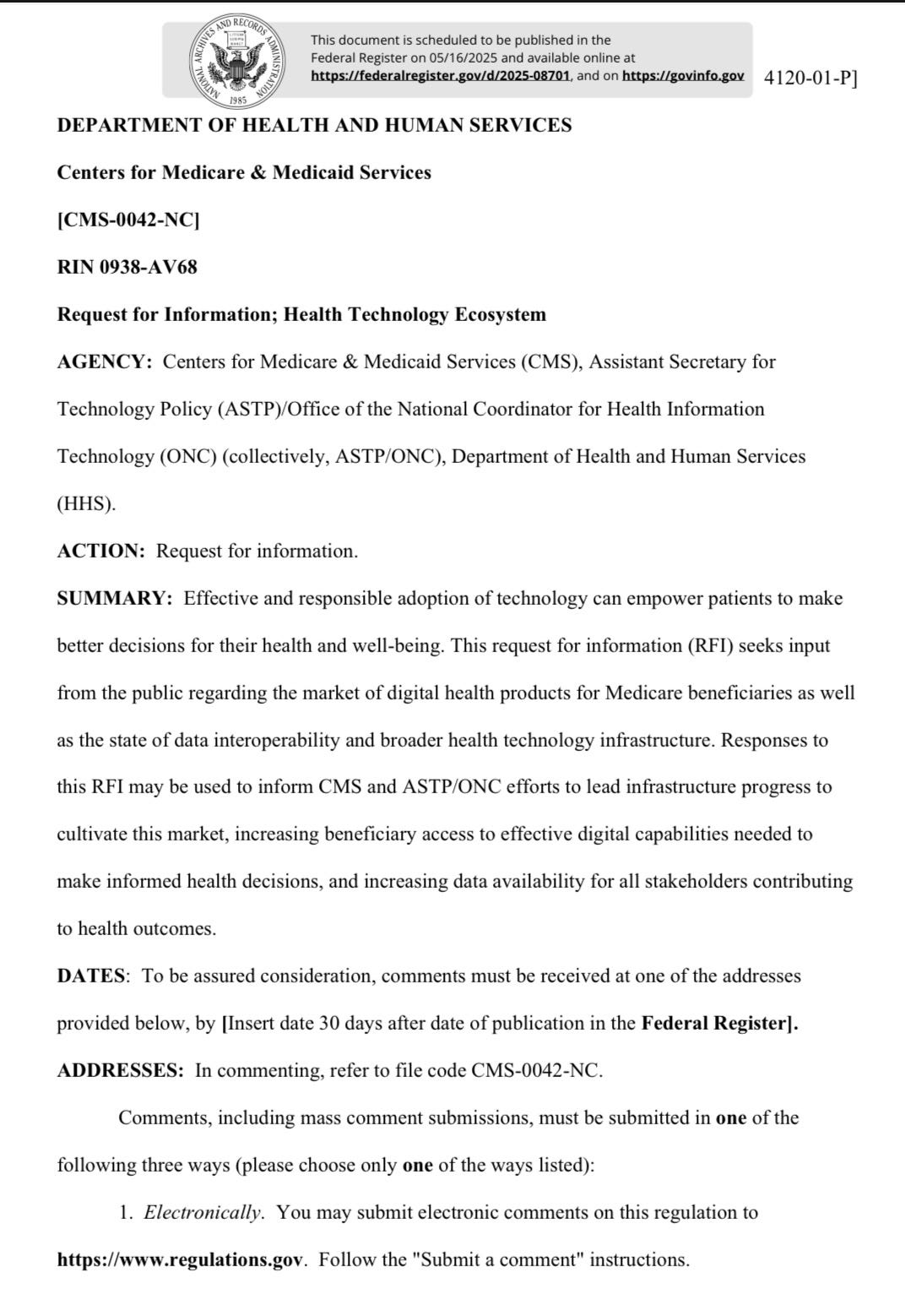 The Centers for Medicare & Medicaid Services’ 2025 Request for Information on the Health Technology Ecosystem marks a subtle but decisive evolution in federal policy posturing. It signals not only the maturation of CMS and ONC’s interoperability agenda but also the intent to deepen government influence over the infrastructure and innovation pathways of digital health products. What makes this RFI uniquely consequential is not its exhaustive list of questions, nor its novel policy anchors, but the rare clarity with which it invites the technology market into a dialogue about regulatory shaping. In so doing, it offers a thinly veiled message to incumbent technology vendors—particularly electronic health record (EHR) firms, health information networks, digital therapeutics developers, and payer-aligned IT infrastructure providers—that their participation in the transformation of Medicare’s digital layer will not be optional. How these stakeholders choose to respond will determine whether they become architects or adversaries in this digital health renaissance.