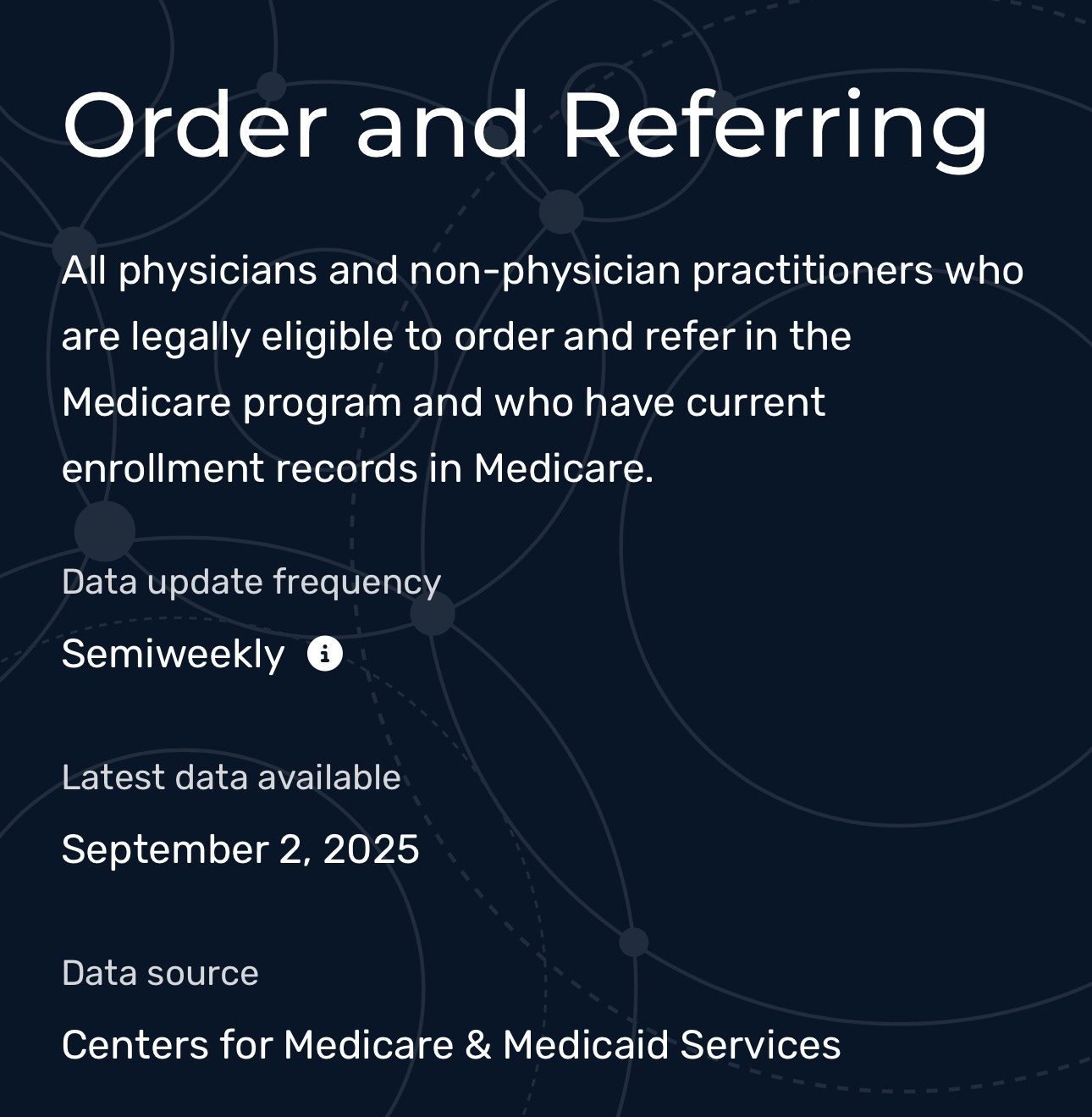 In the labyrinthine world of American healthcare, where regulatory complexity often obscures market opportunity, few datasets reveal as much about the fundamental architecture of medical commerce as the Centers for Medicare and Medicaid Services Order and Referring provider roster. This twice-weekly updated file, containing authorization flags for nearly two million clinicians, represents the ground truth against which billions of dollars in Medicare claims are adjudicated. Yet despite its central role in healthcare operations, the roster remains largely overlooked by health technology entrepreneurs and investors who focus on more visible aspects of the healthcare ecosystem. This oversight represents a significant missed opportunity, as understanding the structure and implications of this dataset reveals multiple avenues for creating defensible competitive advantages in healthcare technology markets.